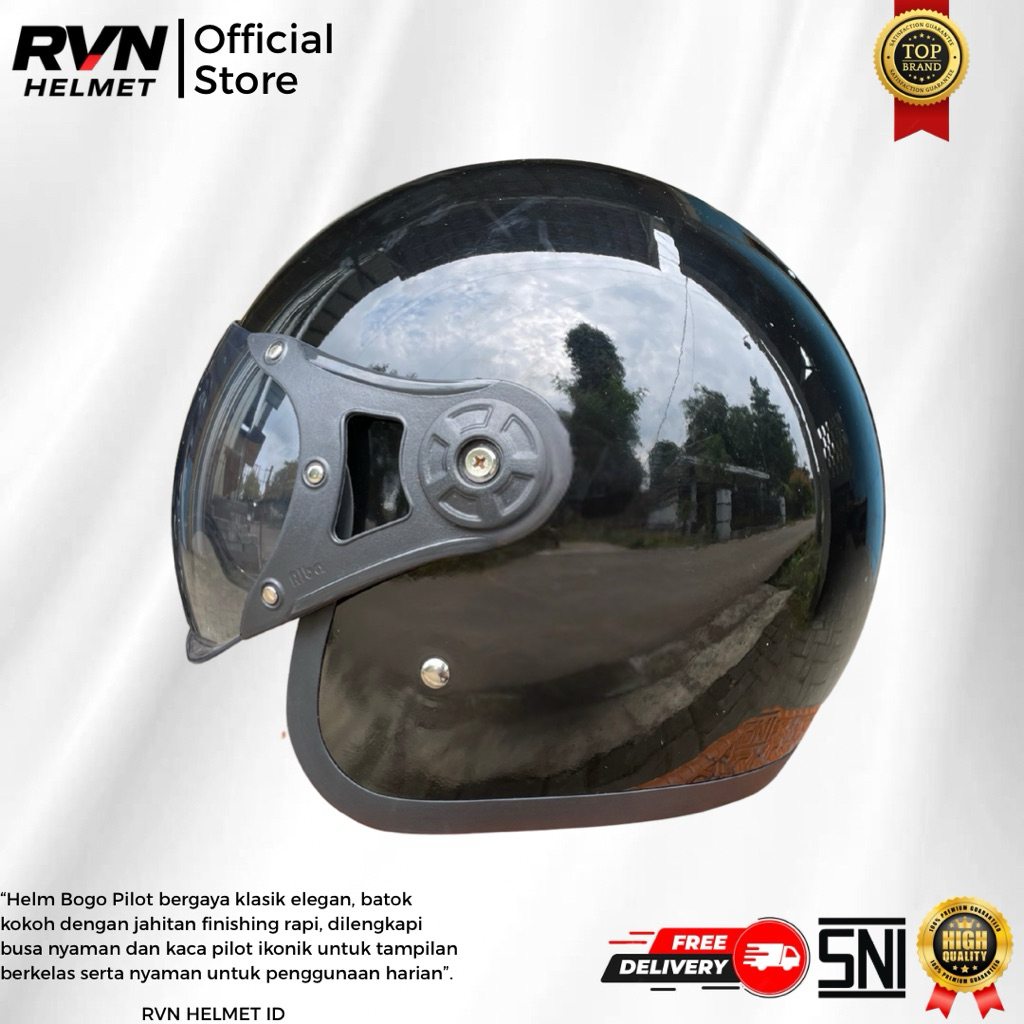 Helm Retro Bogo Pilot - Dewasa Pria Wanita SNI Glossy Doff Premium Kaca Pilot Solid