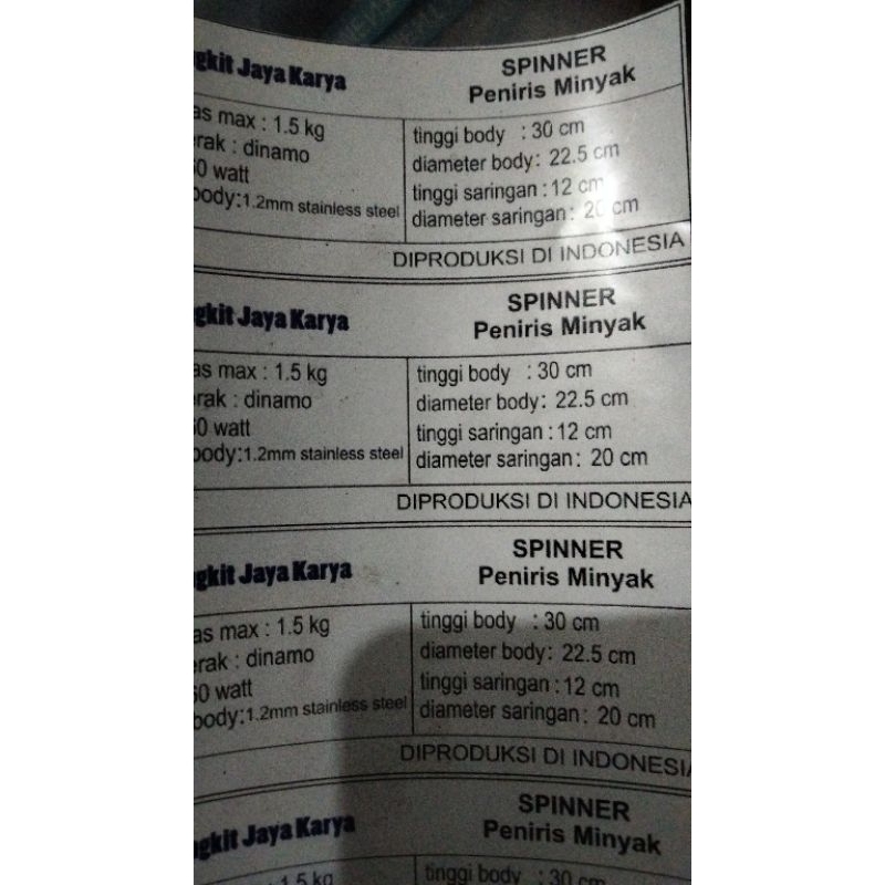 Saringan Spiner untuk Meniriskan Minyak Kapasitas 4Ltr