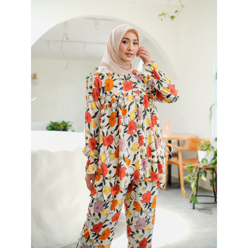 Auraquina . Mona Set . One Set Piyama Setelan Rayon
