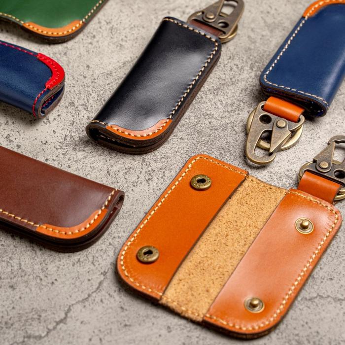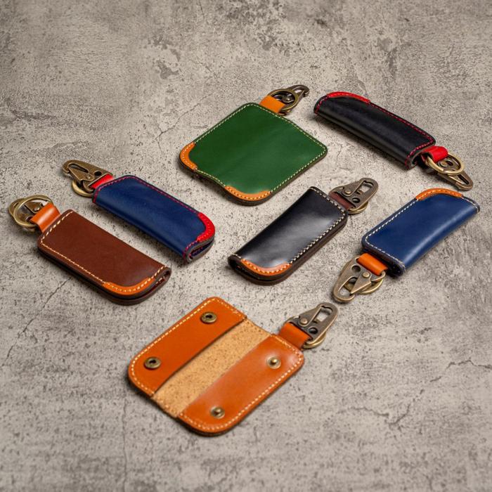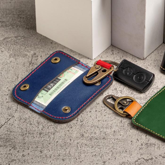 GANTUNGAN KUNCI MOBIL MOTOR CARABINER DOMPET STNK KULIT SLIM POLET - HITAM X TAN