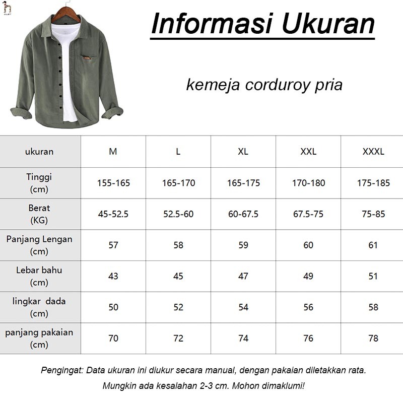 OLET Kemeja Corduroy Lengan Panjang Kasual Pria , Model Terlaris, Ukuran M-3XL, Kemeja Pria Berkerah, Desain Elegan dan