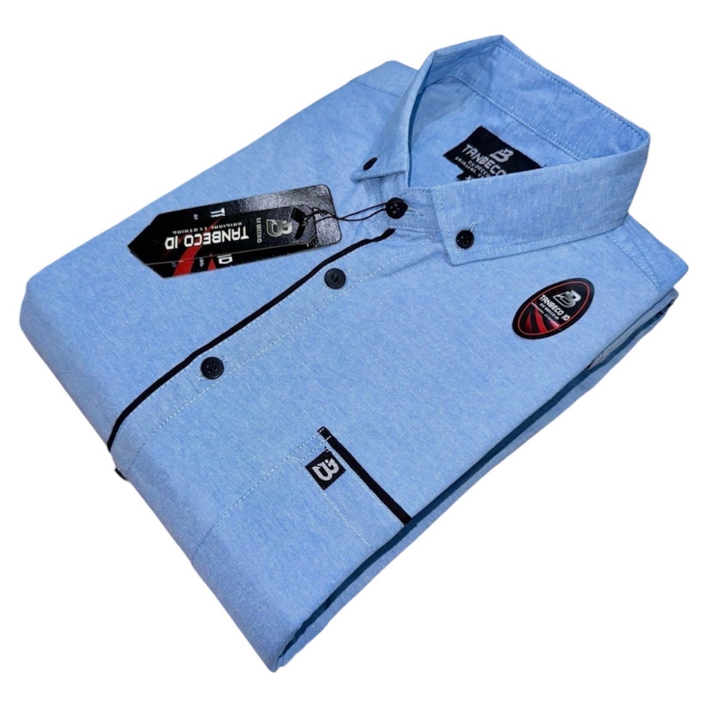 Kemeja Polos List Pria Jumbo Lengan Pendek Casual Premium Imoprt Hem Formal Kantor Cowok Big Size XXL XXXL XXXXL Atasan