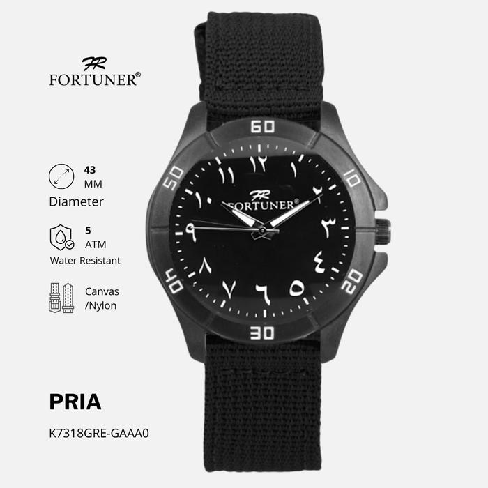 FORTUNER JAM TANGAN PRIA ANALOG QUARTZ KALIGRAFI ANGKA ARAB TAHAN AIR KANVAS EMAN - HITAM ANGKA