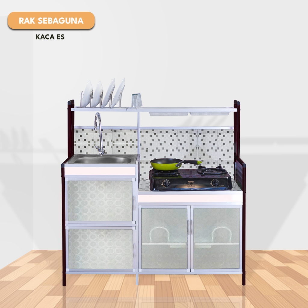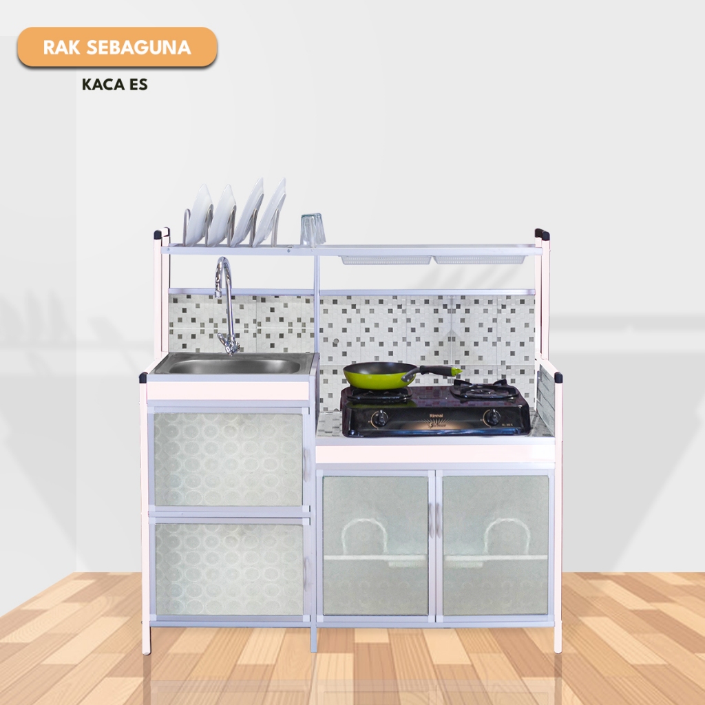 Rak Serbaguna Kompor & Wastafel dengan Kitchen Sink dan Rak Piring – Full Keramik & Kaca