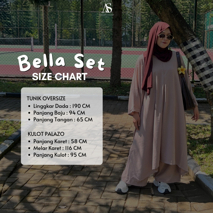 Setelan Wanita Bella Set Tunik Oversize + Kulot Palazo Stelan Wanita Syar'i dres wanita Gamis jumbo