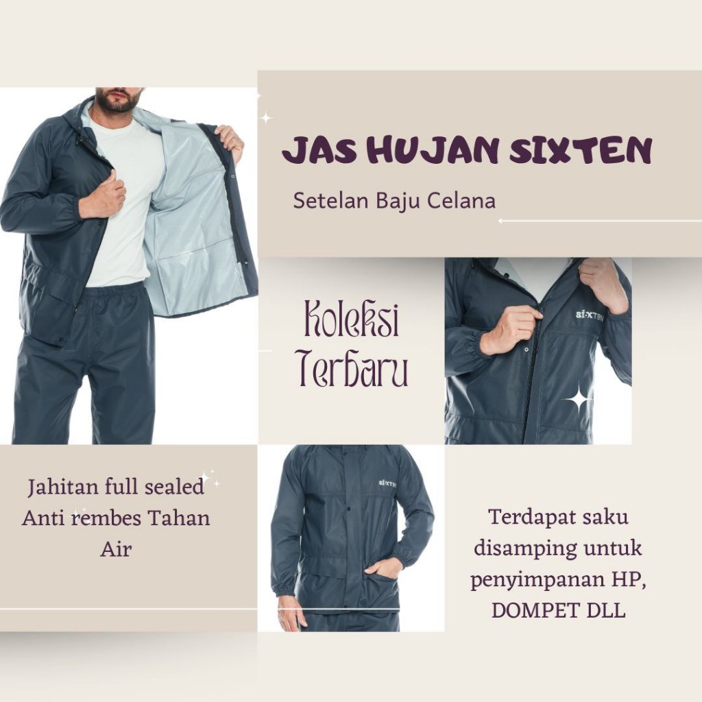 Jas Hujan Setelan Sixten Baju Celana Bahan Taslan Import Pria wanita Dewasa
