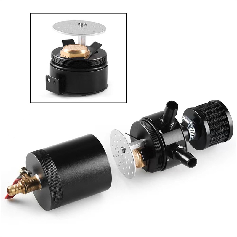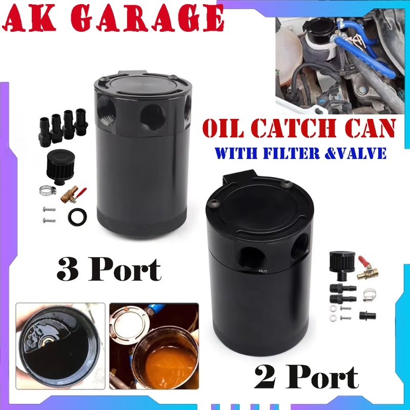 2/3 Port Oil Catch Can Kompak Bingung Aluminium Kaleng Penangkap Minyak Tangki Reservoir Dengan Drain Valve Penyaring Pe