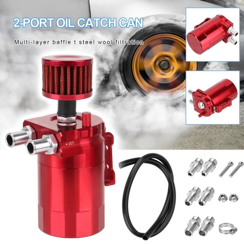 2 Ports Oil Catch Can Tangki Reservoir Universal Dengan Nozel Filter Bahan Bakar Aluminium Baffled Oil Tank Aksesoris Mo