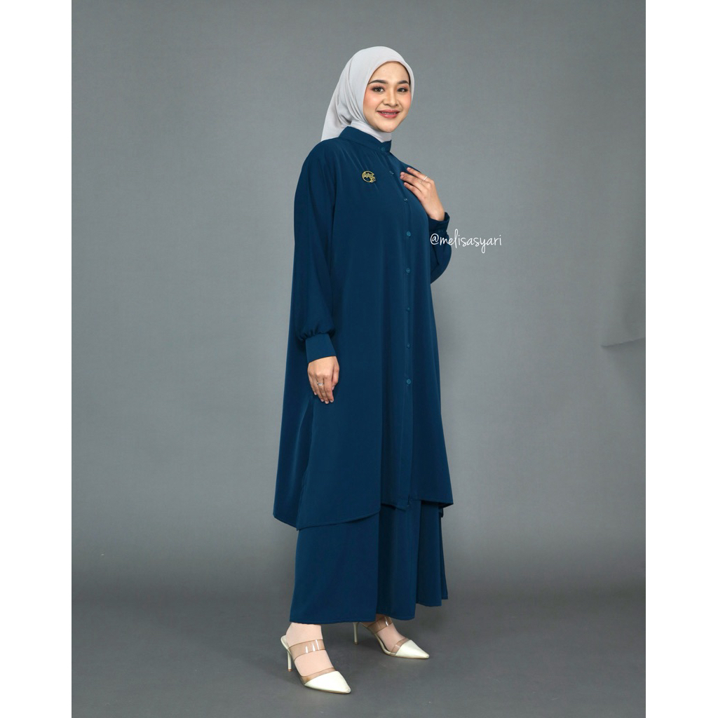 Davina Oneset Long Tunik Polos Marina silk Busui Friendly By Melisa Syari
