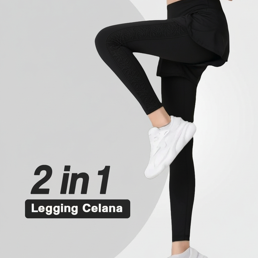 Celana Legging 2 in 1 Wanita Yoga, Olahraga,Zumba / Fleksibel & Tahan Lama / Legging Celana OLahraga