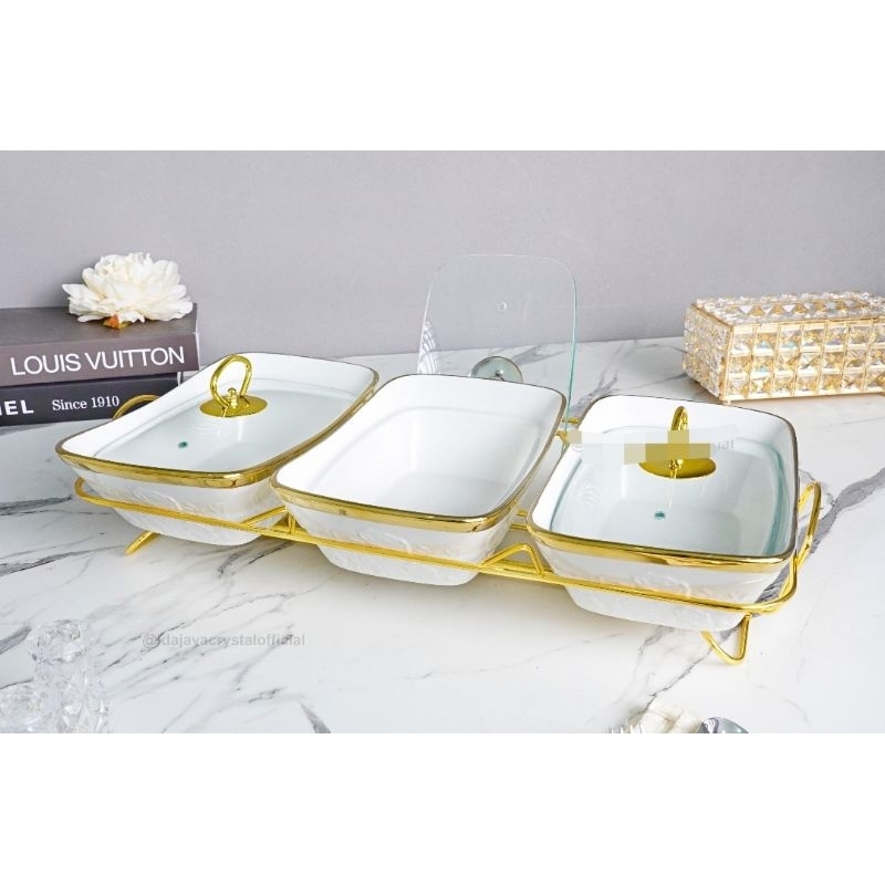 Prasmanan Keramik Porcelain Putih Motif Mawar Free Paking Kayu