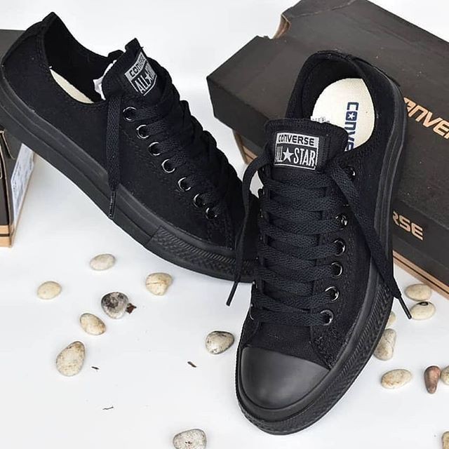 PROMO SEPATU SEKOLAH PRIA WANITA CONVER5 ALL STAR PENDEK FULL HITAM POLOS 36-43