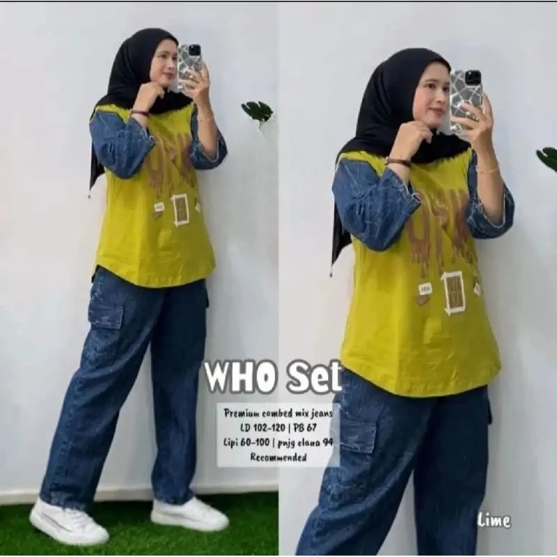 Setelan Wanita Jeans Kombinasi Katun Tebal Lembut