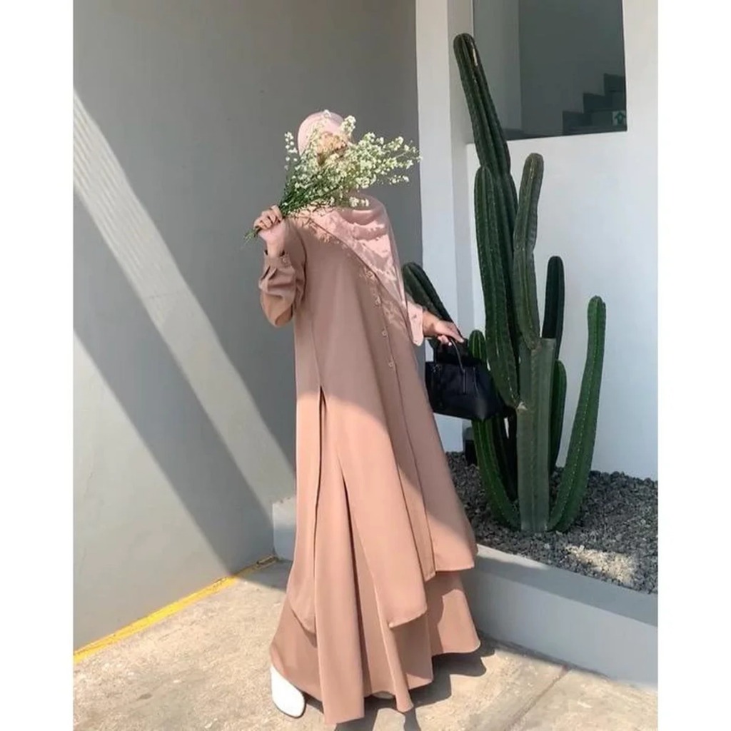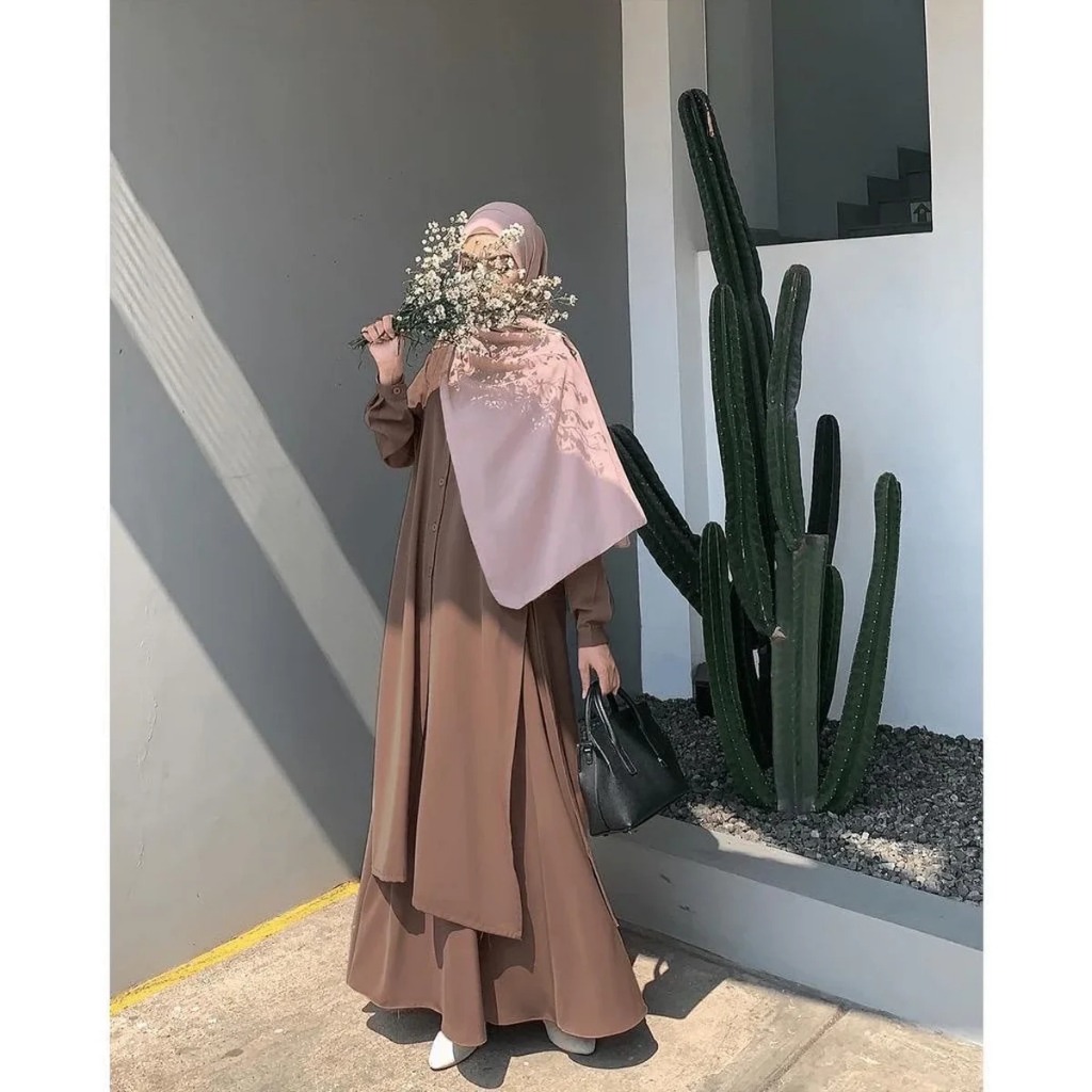 Vania One set Rok Long Tunik Syari Baju setelan Wanita Muslim Atasan Size Jumbo Bahan Ity Crepe Belah Samping Full Kanci