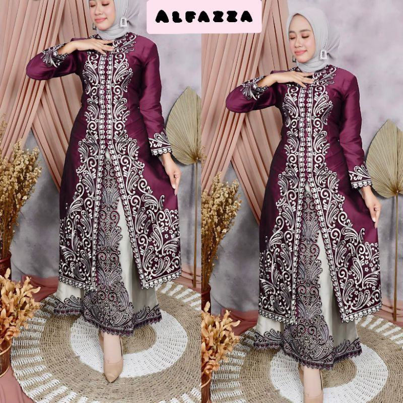 Set Jom-Jom / Stelan Rok Sateen Bridal Combinasi Bordir,Kebaya Setrok Bordir / Kebeya Modern / Baju Pesta Elegant