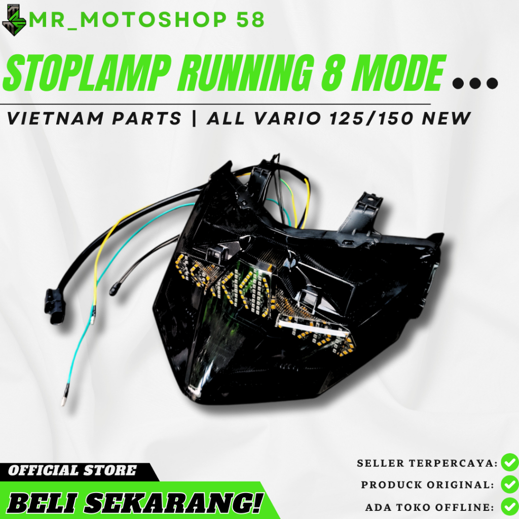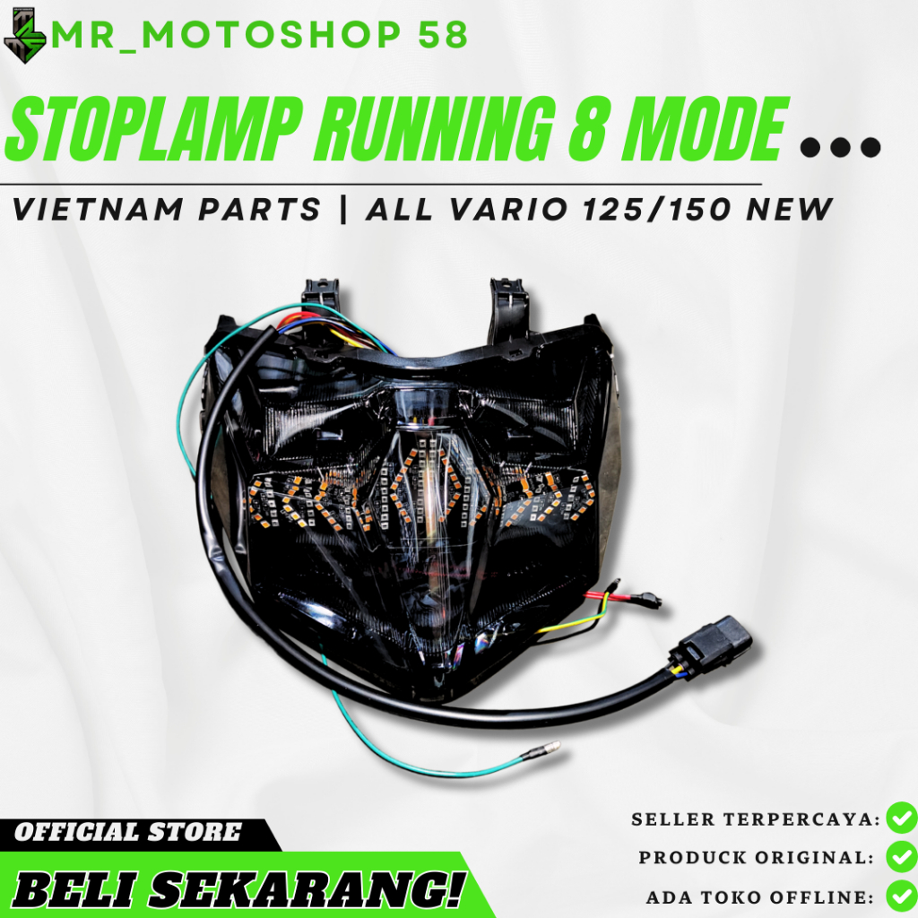 STOPLAMP RUNNING VARIO 125 150 LED NEW 1 SET MIKA LENGKAP LAMPU TINGGAL PASANG 3 IN 1 RUNNING 8 MODE