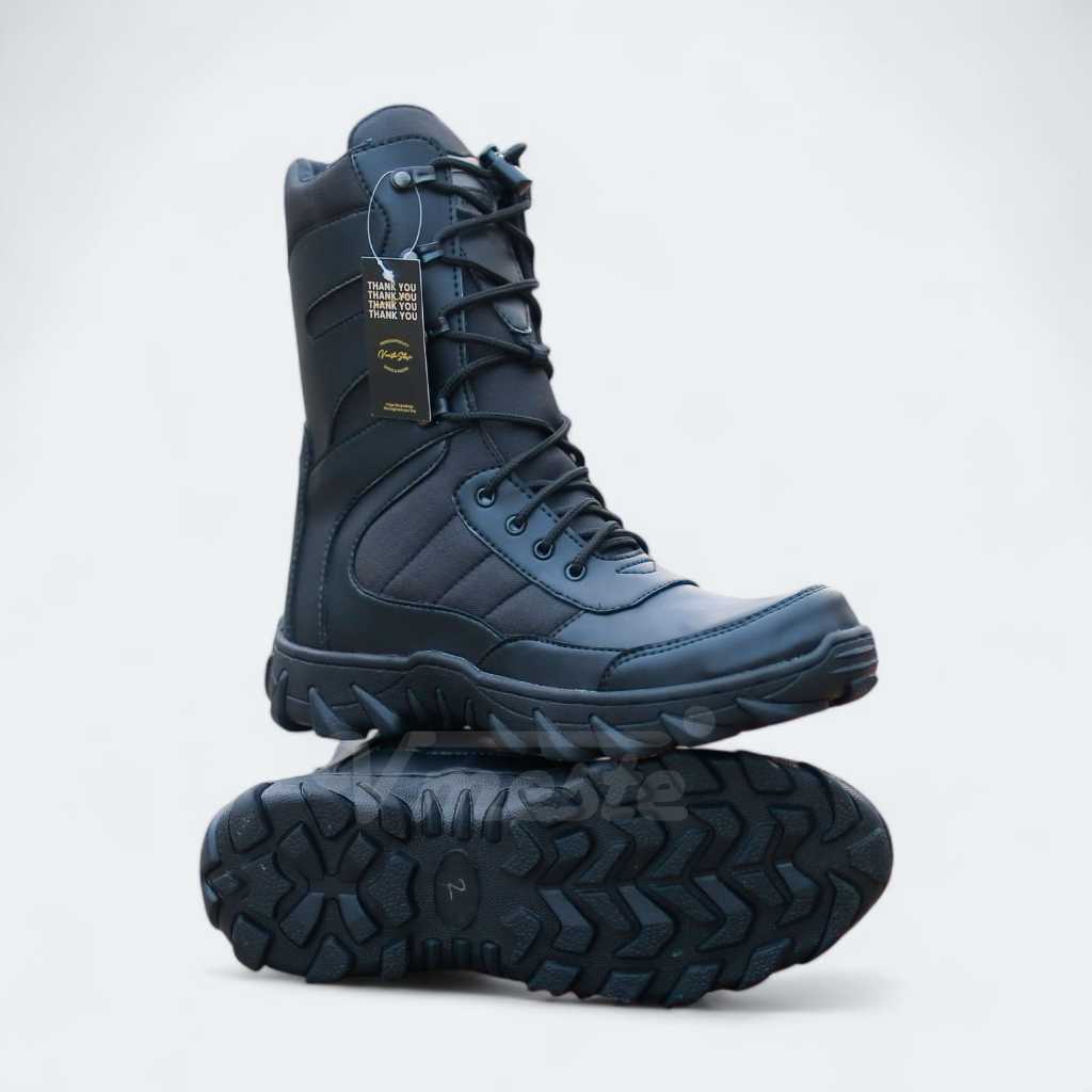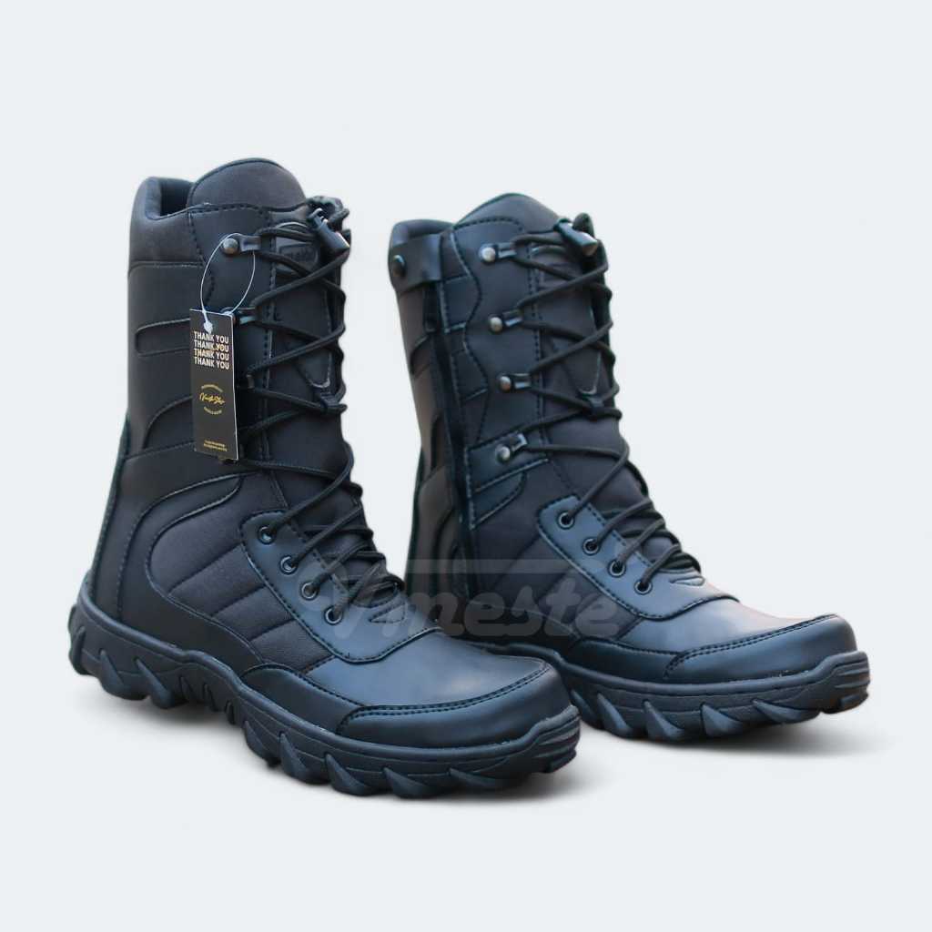 VMESTE - Sepatu PDL Predator TNI Polri Brimob Security Satpam Kulit Sintetis Hitam Doff Ujung Besi