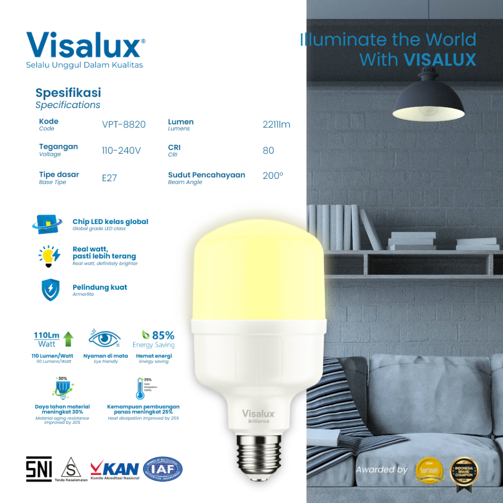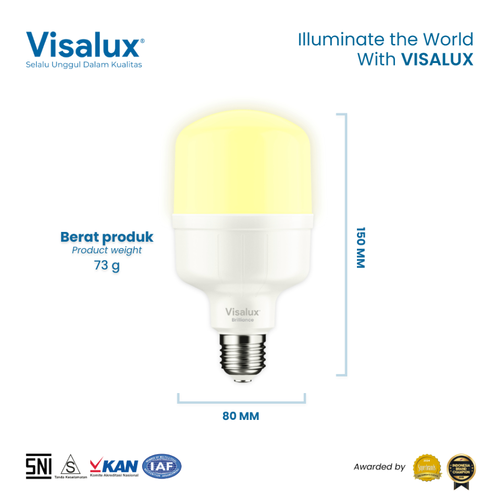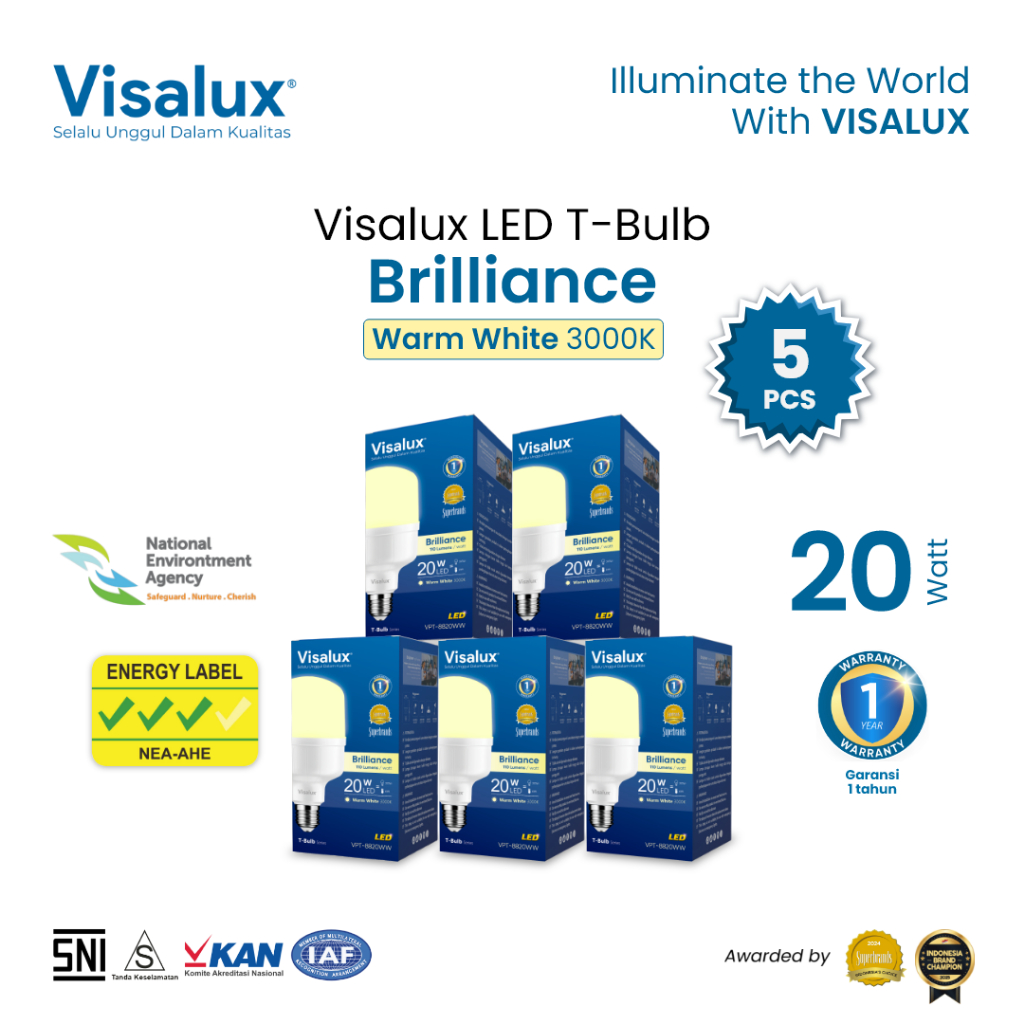 Visalux Lampu LED T-Bulb Brilliance 3000K WarmWhite Kuning 20W - Bundling Paket 5 pcs (BRI-VPT8820WW)
