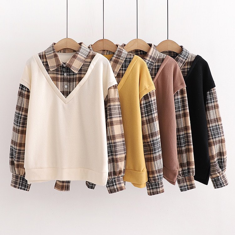 Vallina Kimberly Flanel Blouse Combi Fold Terry Shirt Atasan Kemeja Flannel Top Muslim Wanita Premium Korean Style