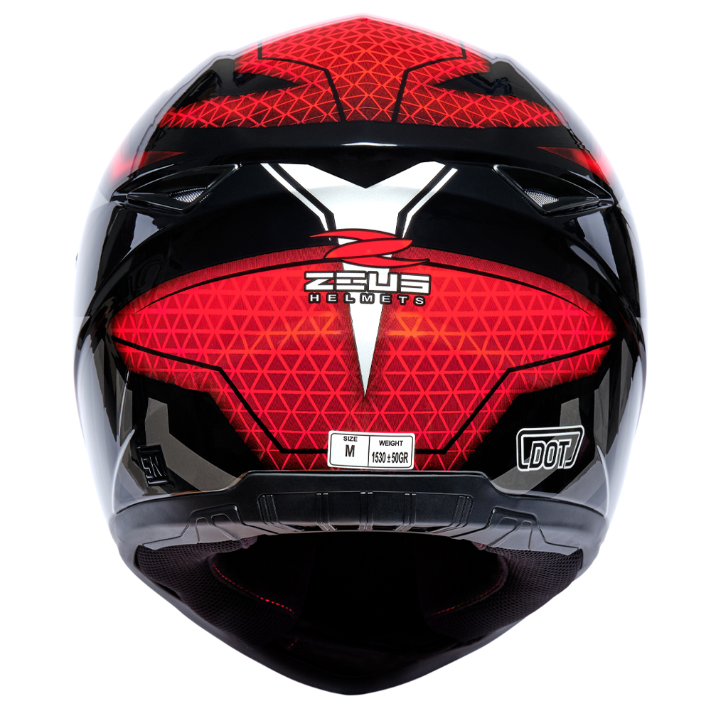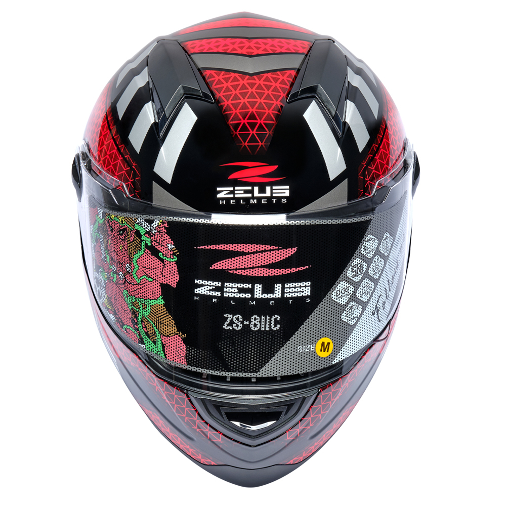 ZEUS ZS 811C BLK AL57 RED GLOSSY FULL FACE SINGLE FLAT VISOR (FREE DARK SMOKE VISOR)