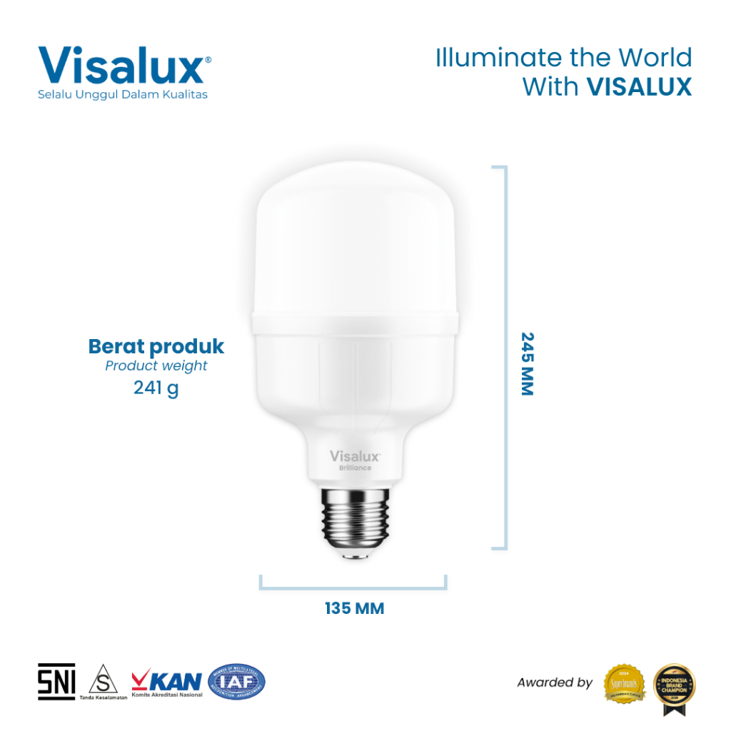 Visalux Lampu LED T-Bulb Brilliance 6500K Daylight Putih 50W - Bundling Paket 3 pcs (BRI-VPT8850DL)