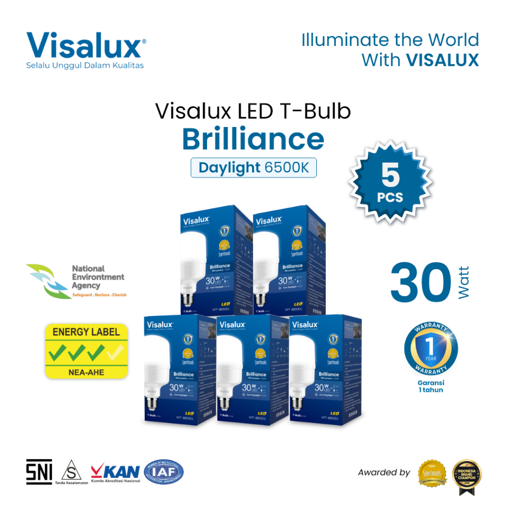 Visalux Lampu LED T-Bulb Brilliance 6500K Daylight Putih 30W - Bundling Paket 5 pcs (BRI-VPT8830DL)