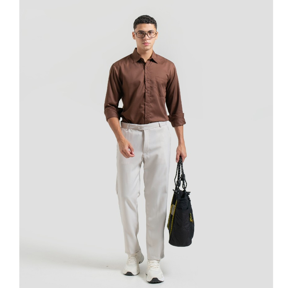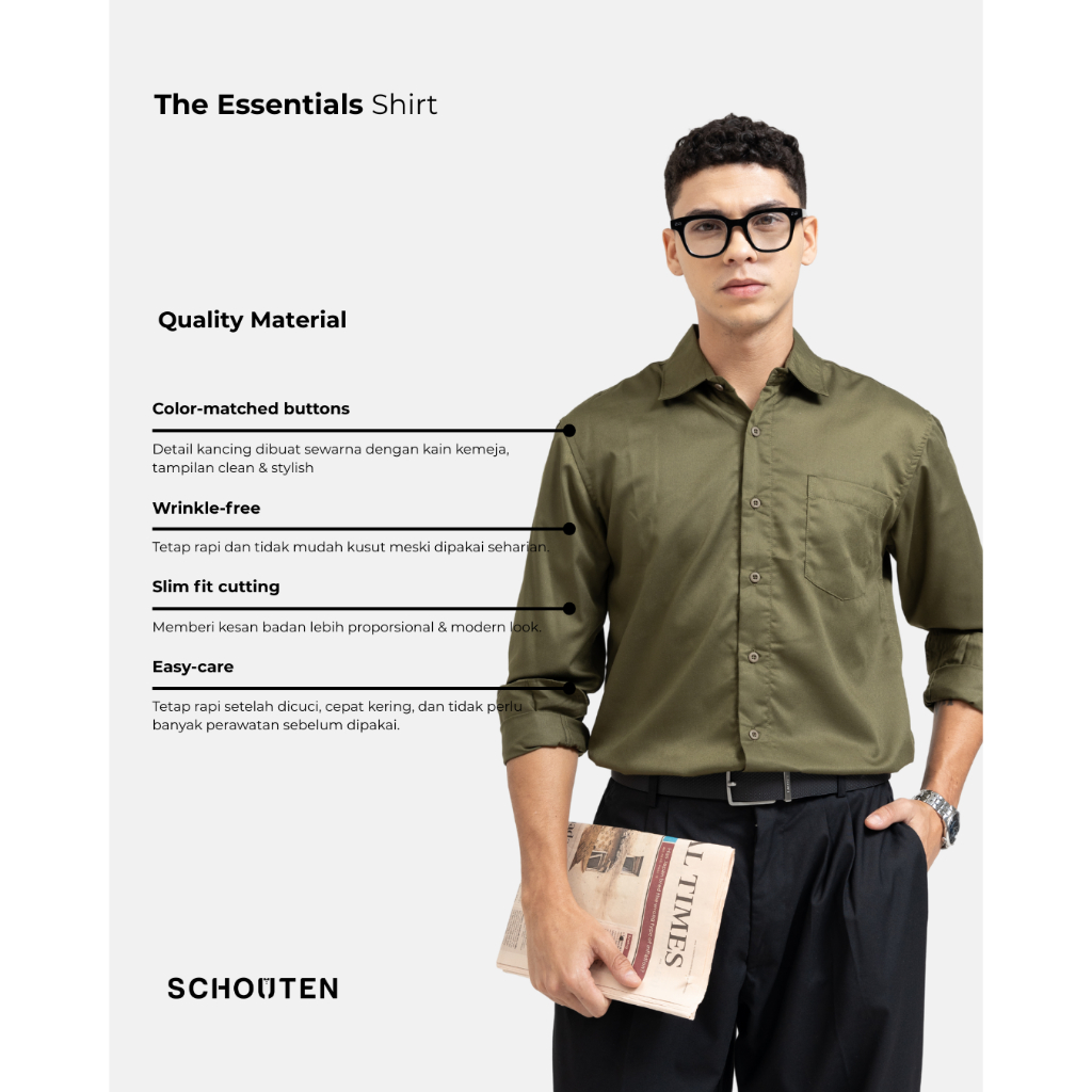 SCHOUTEN The Essentials Shirt Black - Kemeja Kantor Pria Slim fit Hitam Lengan Panjang