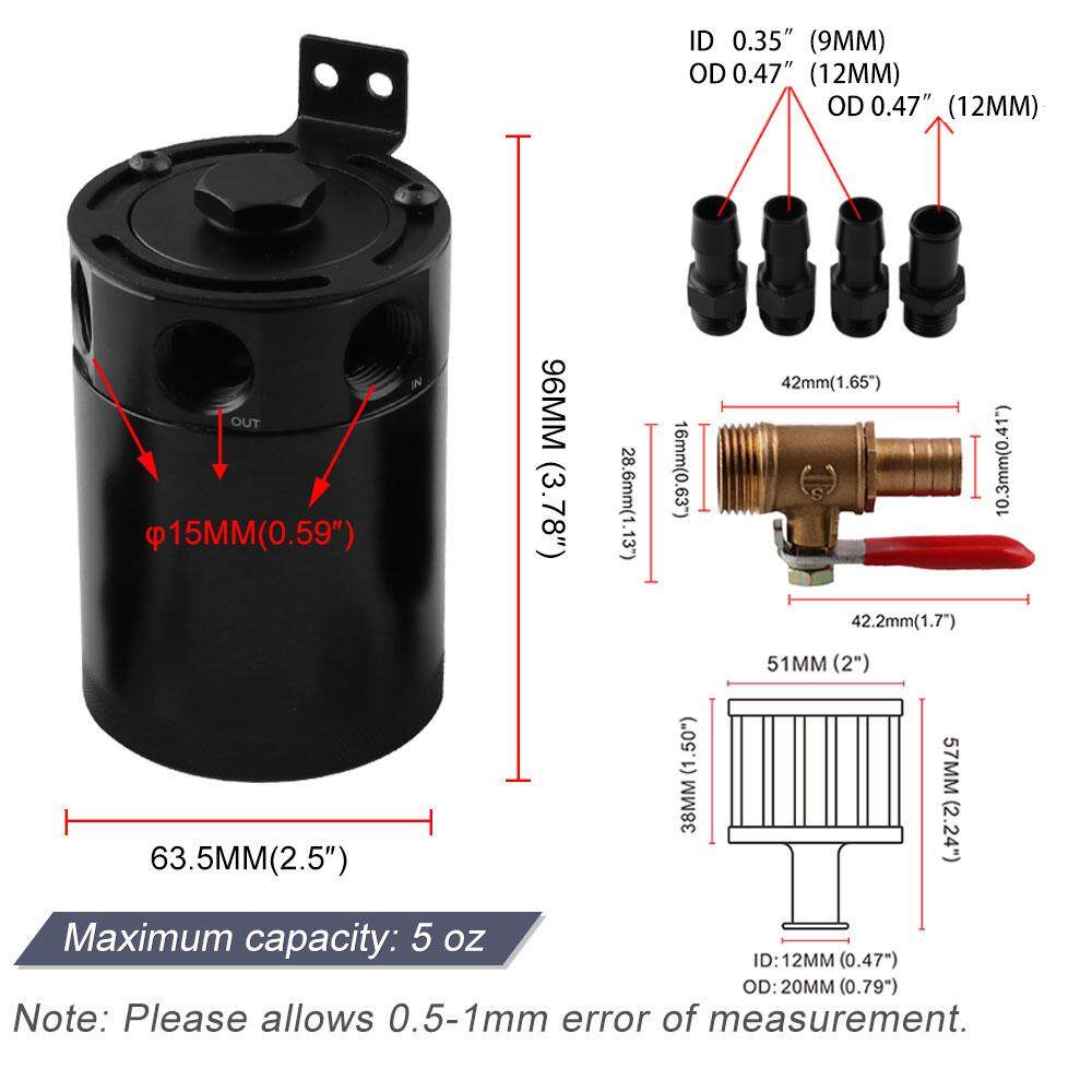 Universal Oil Catch Can Kompak Bingung Aluminium 3 Port Kaleng Penangkap Minyak Tangki Reservoir Dengan Drain Valve Peny