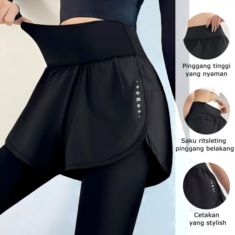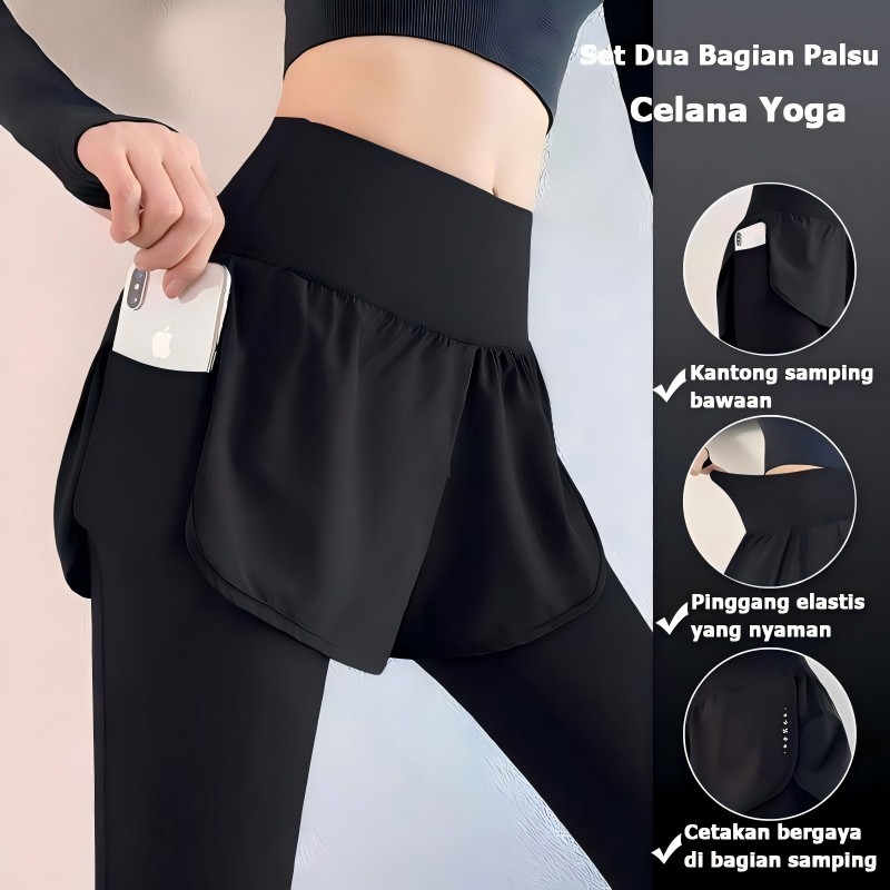 Legging Olahraga Wanita 2 in 1 Yoga Celana Lari Gym Fitness Sepedaan Yoga Running Sport Wanita High Waist Polos c0011g4