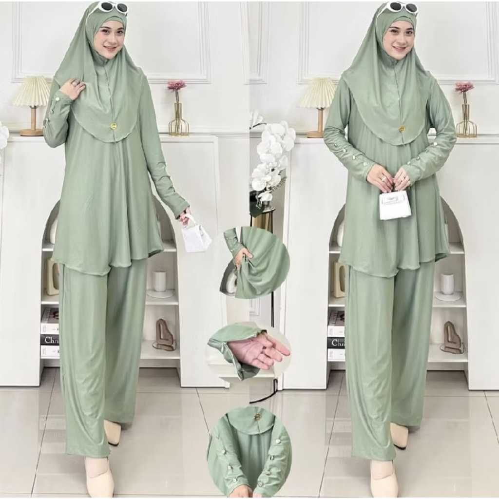 Setelan Celana inara Set Kerudung bergo + inner For Daily Bahan Spandek Balon Semi Jersey