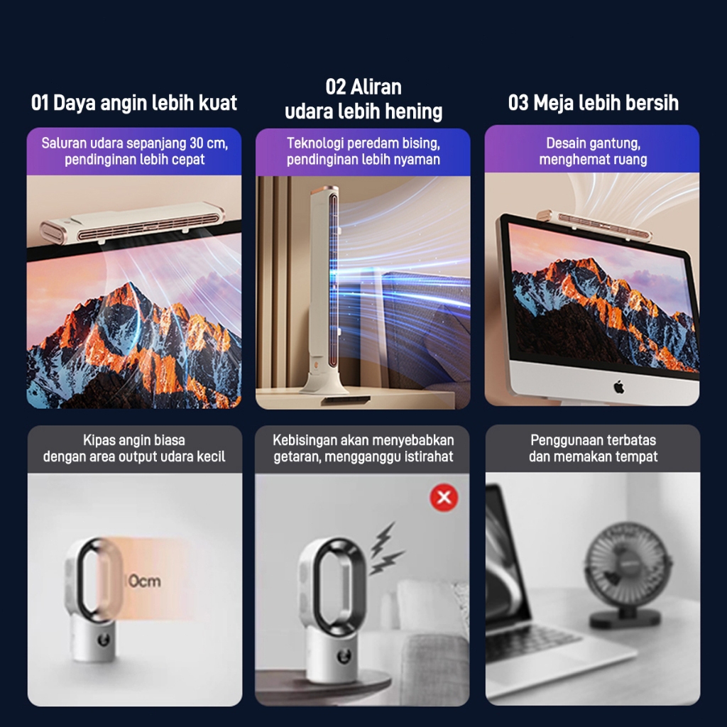 HOYAUP Kipas Meja Ac Kipas Tanpa Bilah Modern Air Cooler Fan Ac Mini Kipas Meja 5 Gear Portabel Bladeless Fan