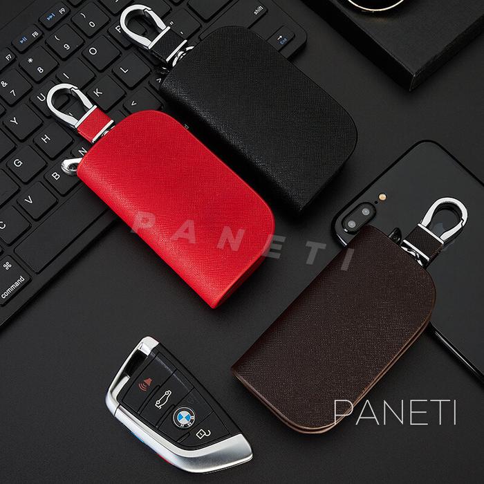 DOMPET STNK KUNCI REMOTE MOBIL MOTOR CROSS PATTERN KULIT ASLI PANETI - BLACK