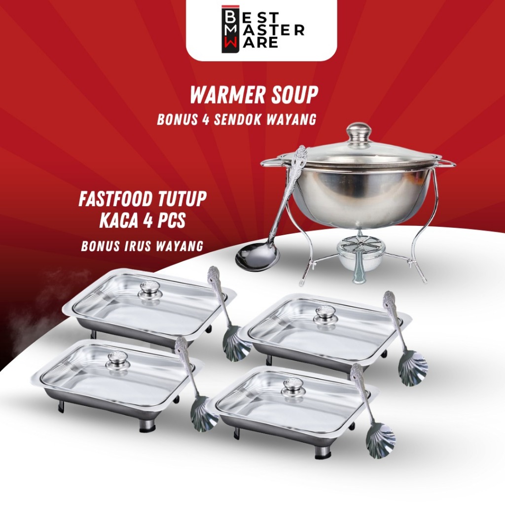 NomiYumi - Paket 10 PCS Prasmanan Set All In One Tempat Wadah Saji Makanan Lengkap Bahan Stainless Berkualitas Prasmanan Serbaguna