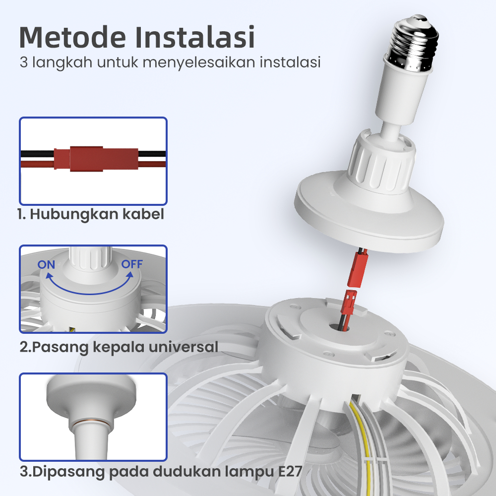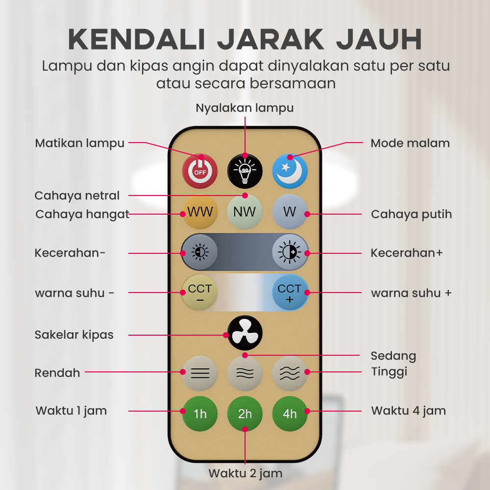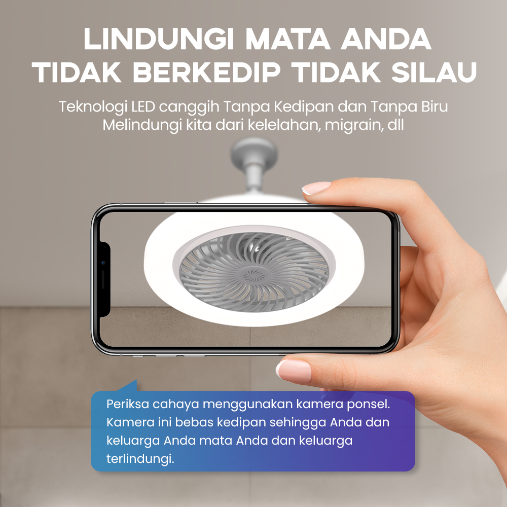 HAN RIVER 30W 2in1 Lampu Kipas Angin Plafon Lampu 3 Warna Remote Dapat Diatur 360° E27 Lamp Holder