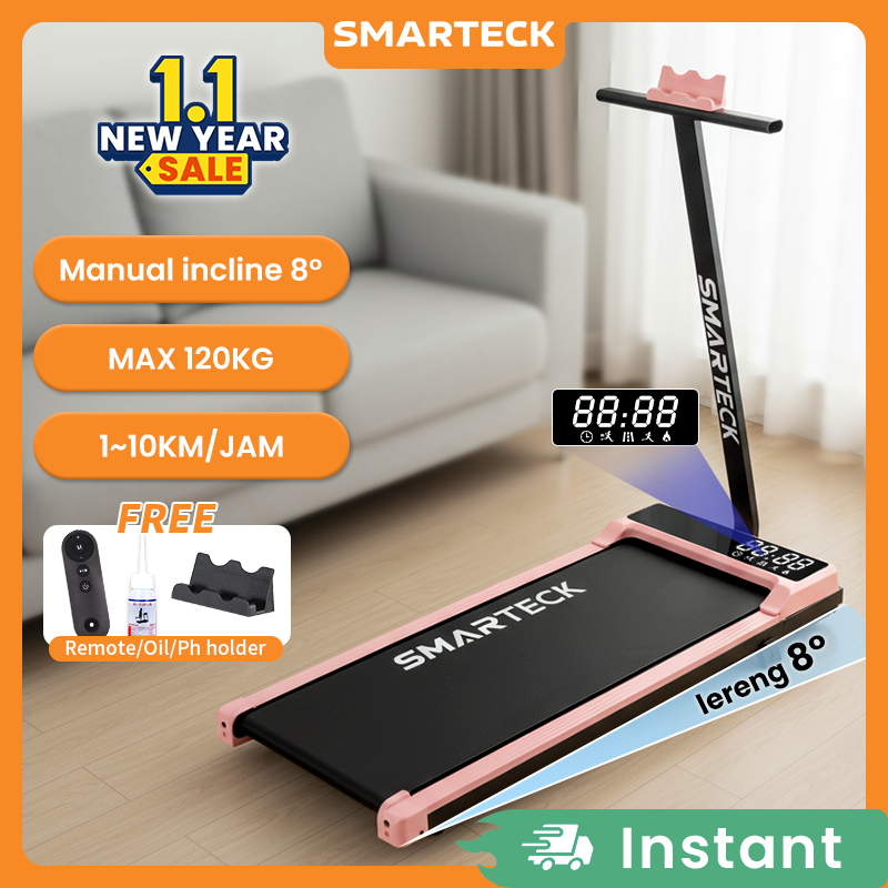 Smarteck Treadmill Incline T Model Sport Treadmill Sudut 8° Electric Low Watt Dapat Dilipat Running Pad Alat Olahraga Fitness Lipat Treadmill Portable Walking Pad