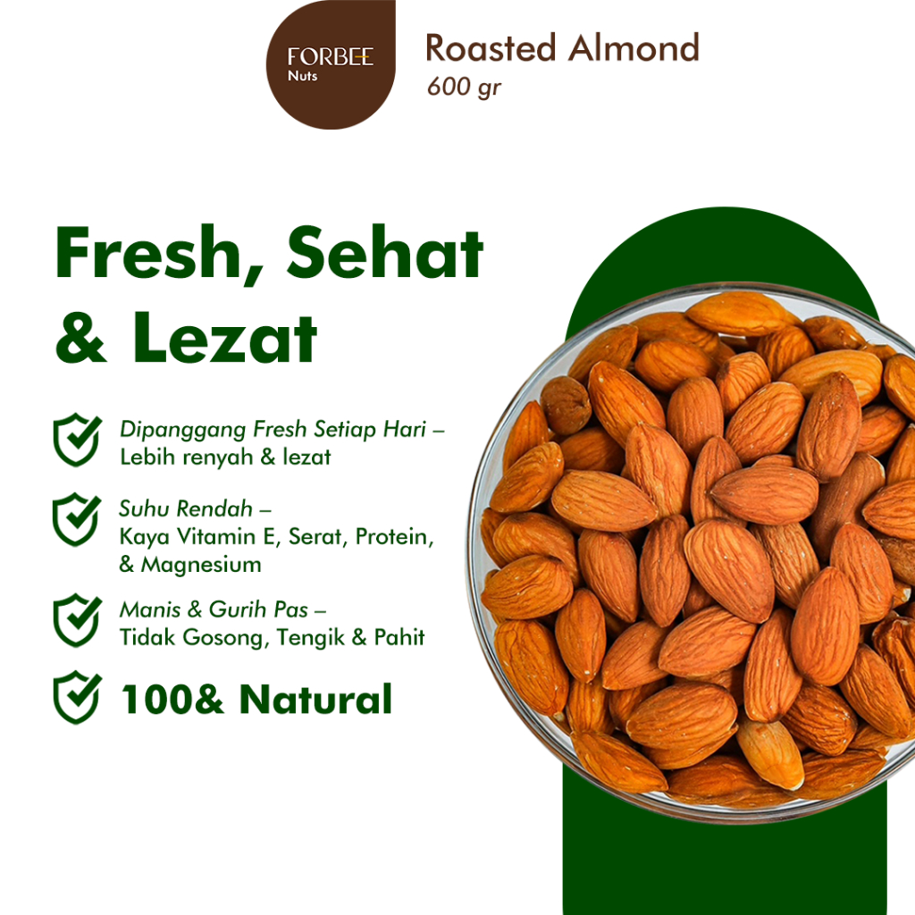Kacang Almond Panggang Forbee 600G | Roasted Almond | Snack Sehat | Cemilan Sehat Kacang Kacangan