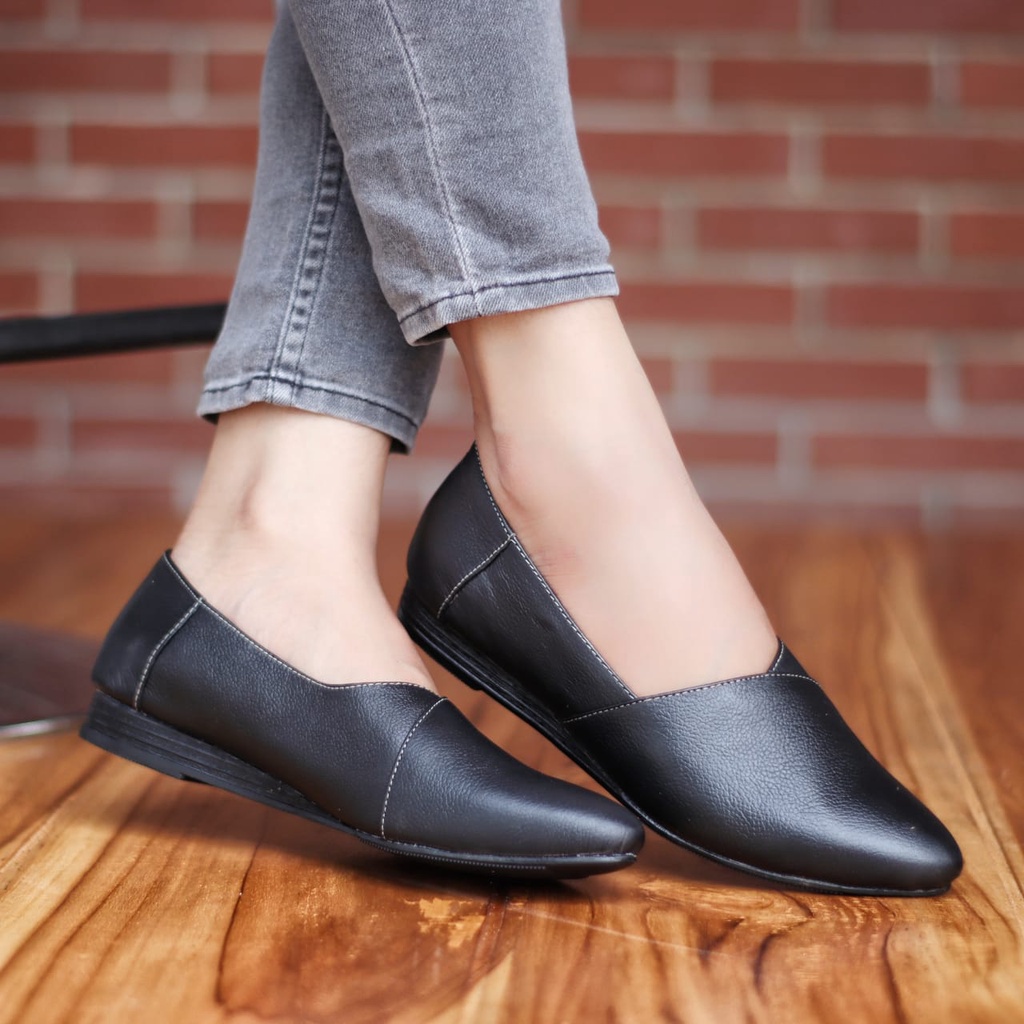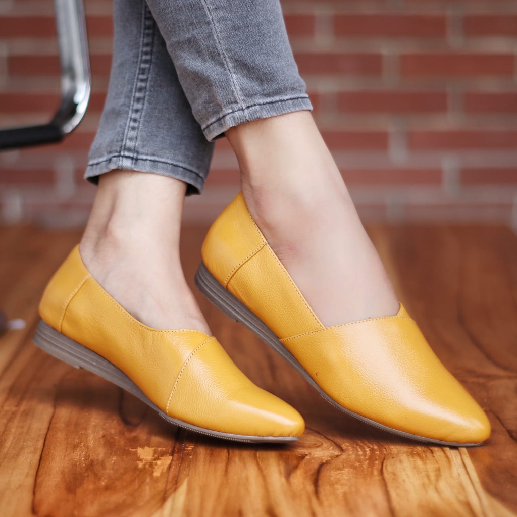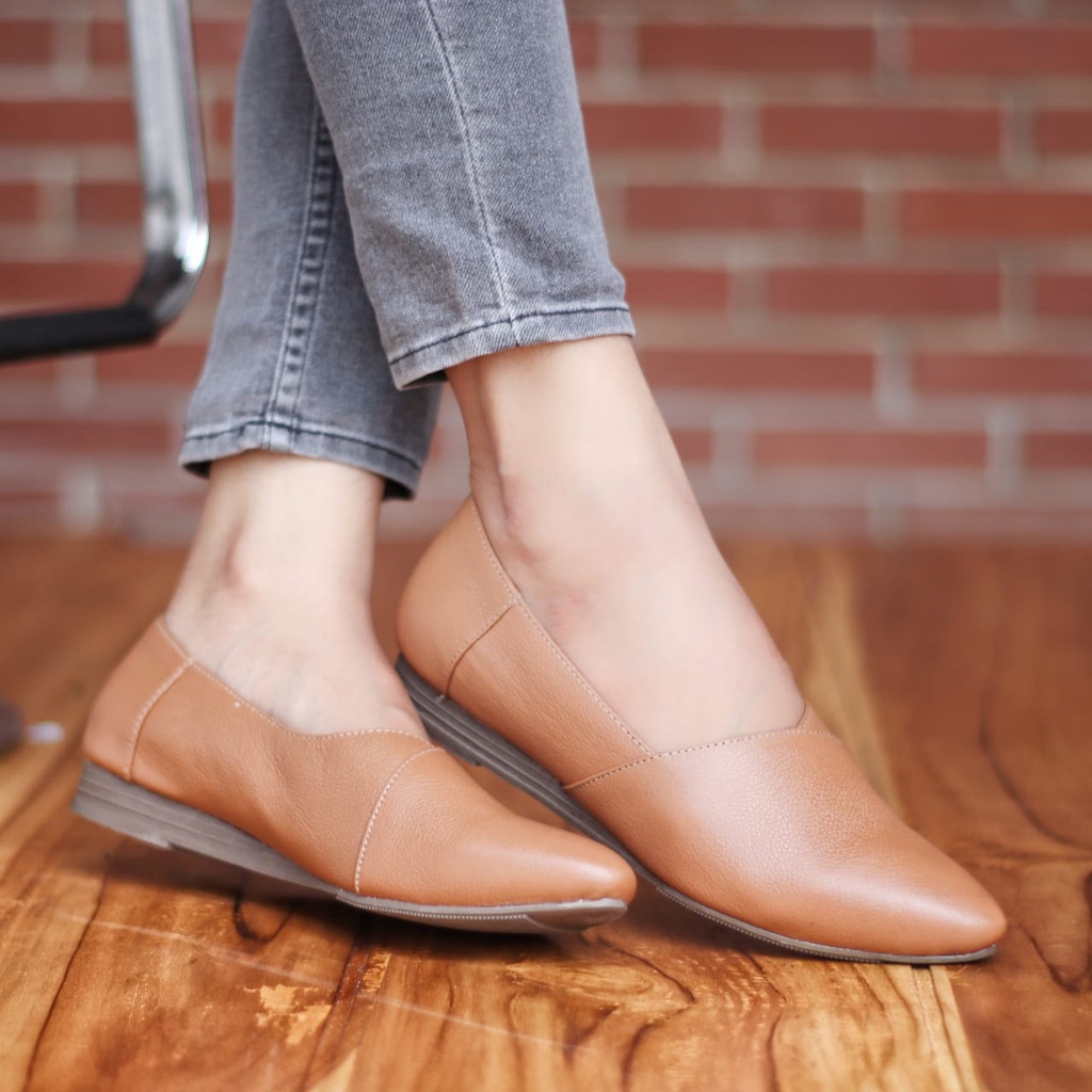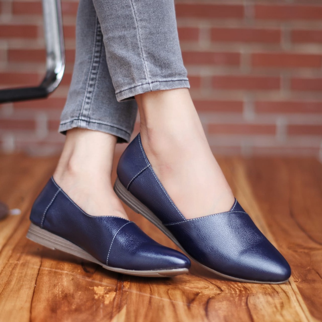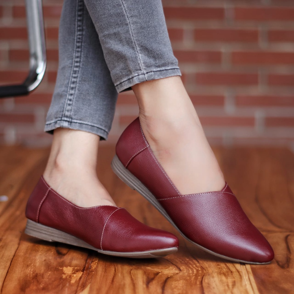 GRANDABLE DENISHA Sepatu Formal Kerja Flat Casual Slip On Kulit Asli Wanita Terbaru