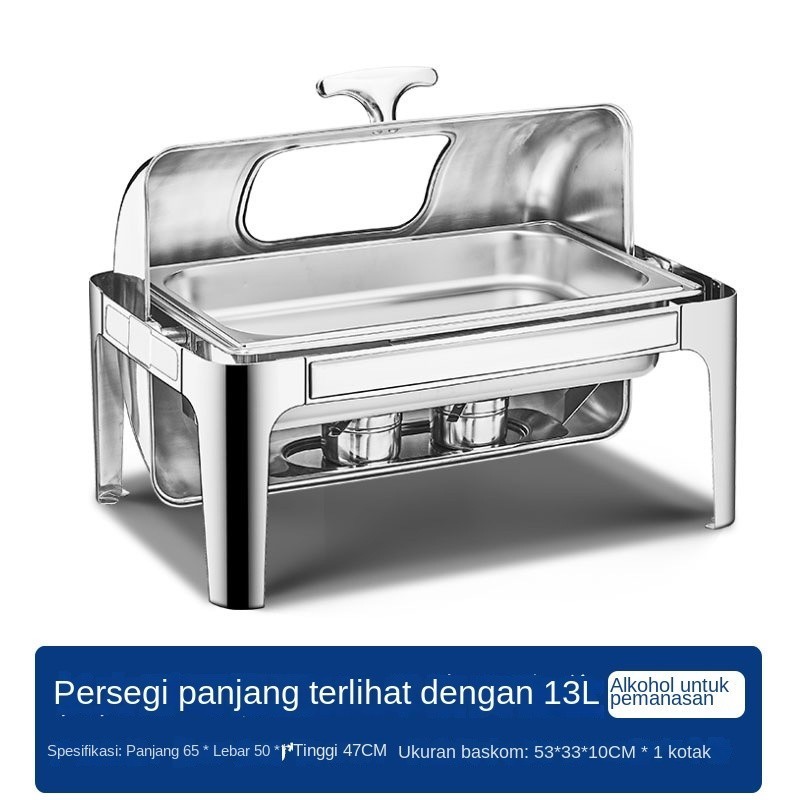 Alat Dapur - Prasmanan Stainless RollTop Segi Oval Stainlees Steel Kualitas Tinggi 9L Chafing Disc CF012-KS