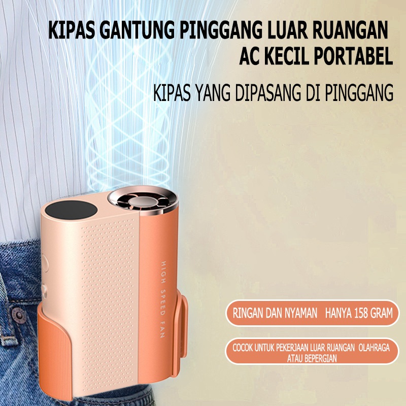 Kipas Angin Mini Gantung Pinggang USB - 100 Level Angin Kuat, Baterai Tahan Lama untuk Camping/Kantor