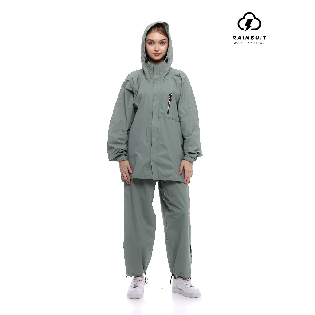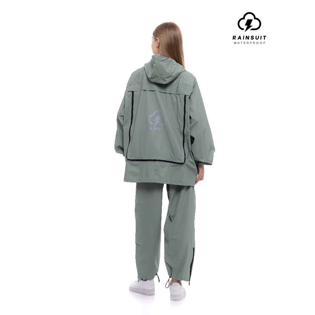 RAINSUIT Jas Hujan Raincoat Backpack Ransel Outdoor Setelan Dewasa Pria Wanita Bahan PVC Warna Sage