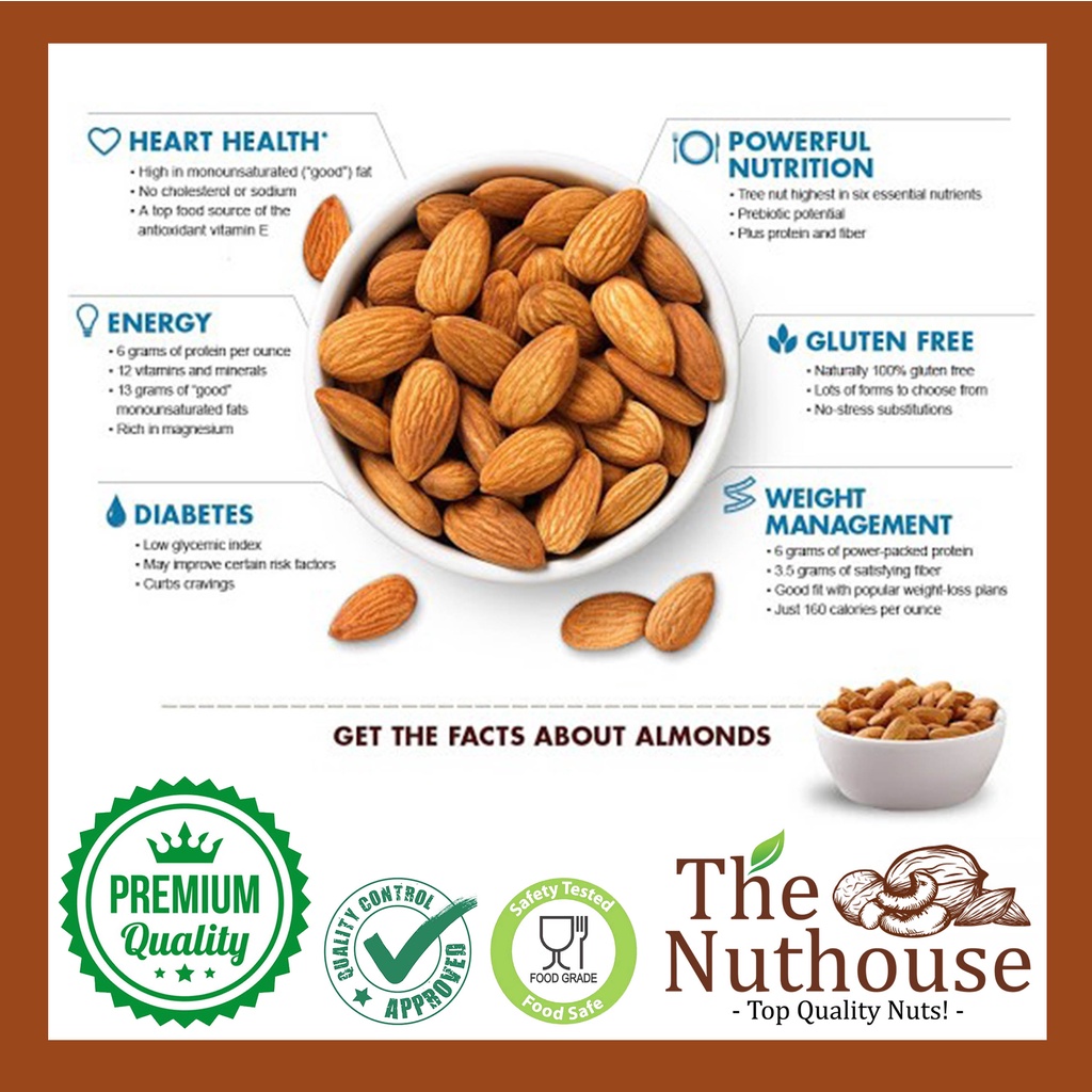 1Kg Almond Whole Premium Roasted Npx 27/30 / Almond Panggang Siap Makan