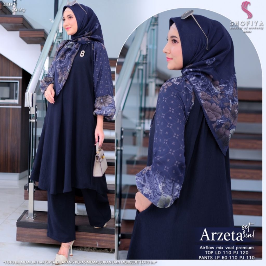 Setelan Wanita Muslimah Premium Elegan Kekinian (plus hijab) Arzeta Set Ori By Shofiya [ READY ]