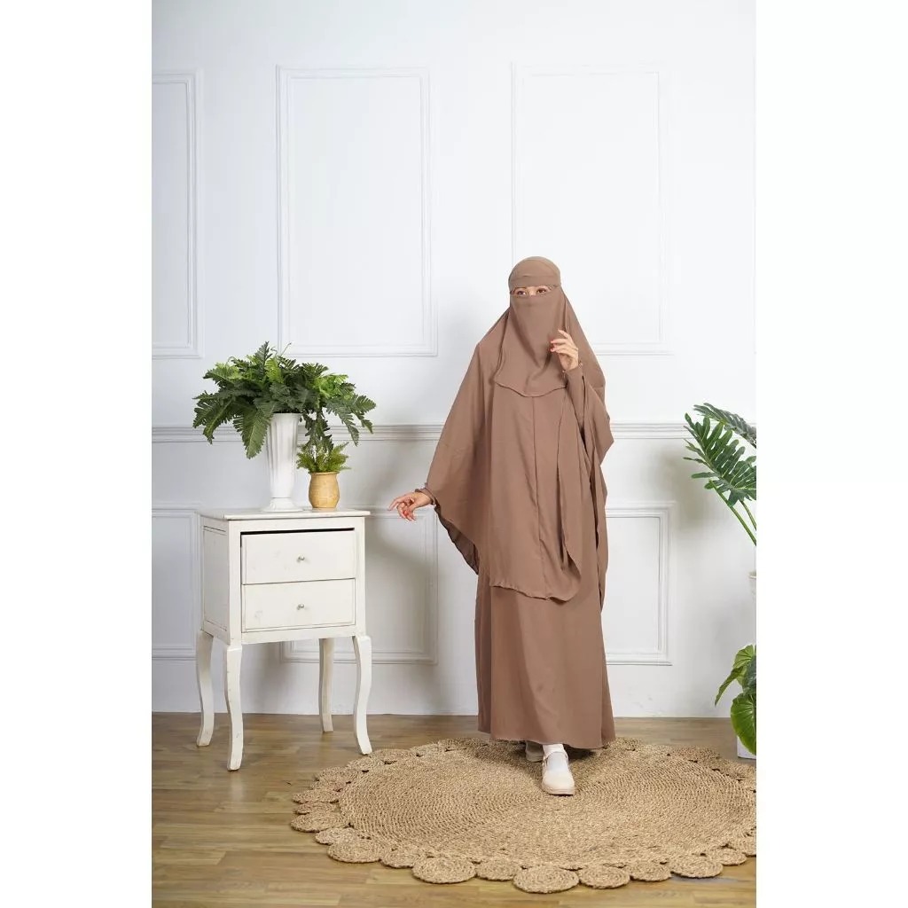 Gamis Set Abaya Cadar Syari Umroh Khimar Jumbo French Haji Bandana Kancing Premium