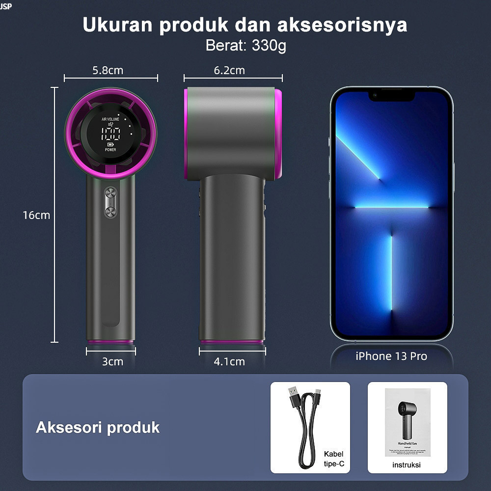 [] kipas angin Turbo Mini Strong Wind 100 Gear Wind Speed kipas Digital Display Adjustable kipas tangan untuk olahraga luar ruangan dan pendinginan cepat