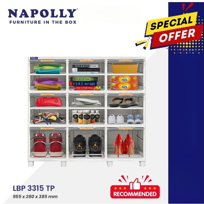 Lemari Plastik Serbaguna NAPOLLY LBP 3315 TP / LBP 3312 TP Tempat TV 6 Laci 9 Pintu Transparant
