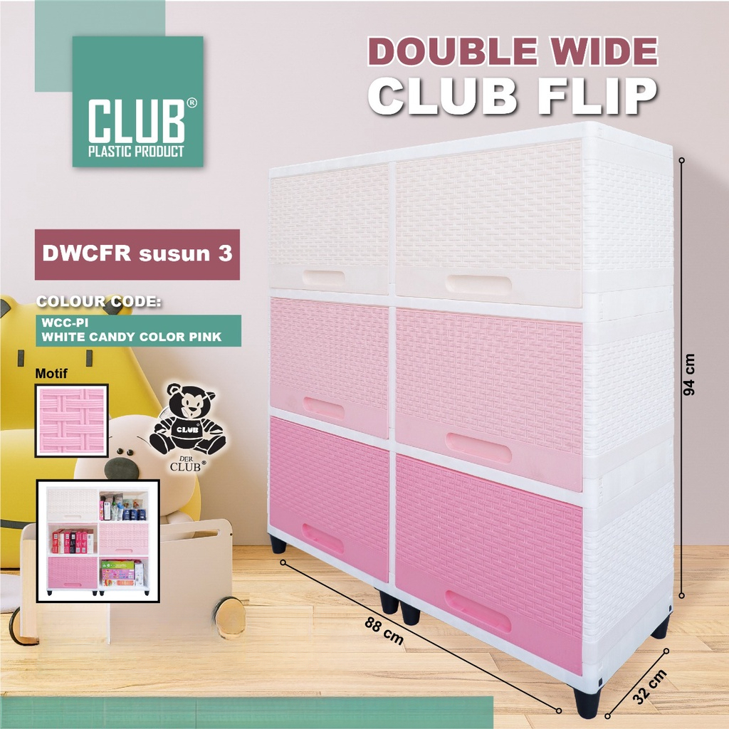 Double Wide Club Flip Susun 3 - Lemari Rak TV Monitor - Lemari Plastik Le Pintu Geser - Lemari Laci Plastik Minimalis -