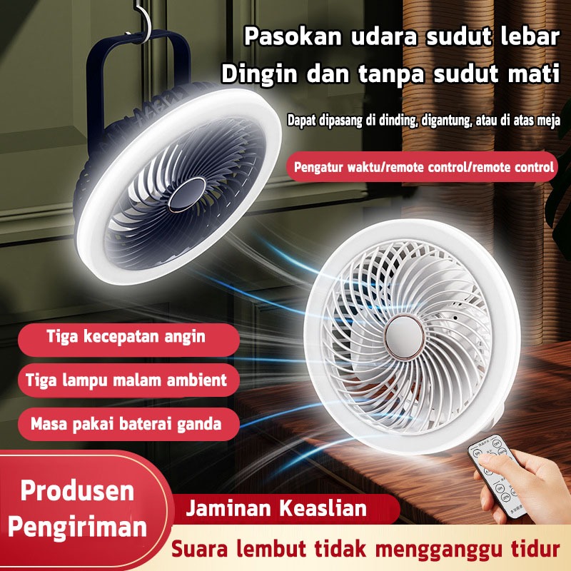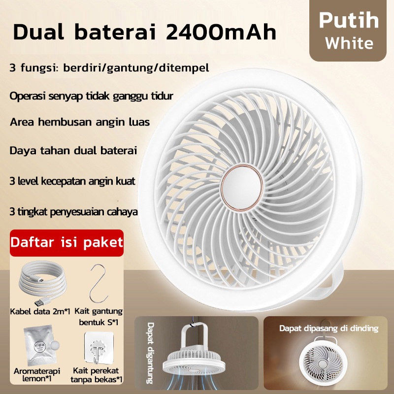 Kipas meja multifungsi, lampu malam mini USB portabel untuk luar ruangan