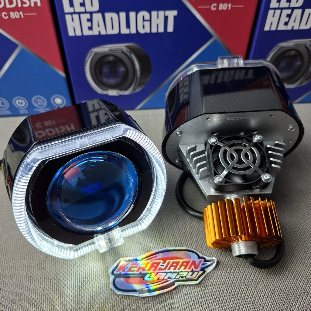 Lampu Biled Projector Asli C01 PRO MODISH Lensa BLUELENS 40 Watt Shroud Hitam 4.5 inc Dengan Kipas Pendingin