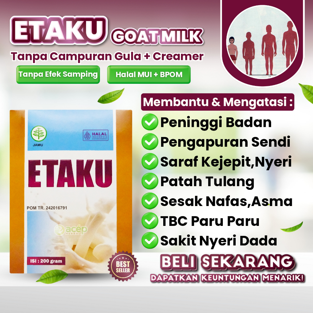 Etaku Susu Kambing Susu Penambah Tinggi Badan Pengapuran Sendi Saraf Kejepit Sesak Nafas Asma Patah Tulang