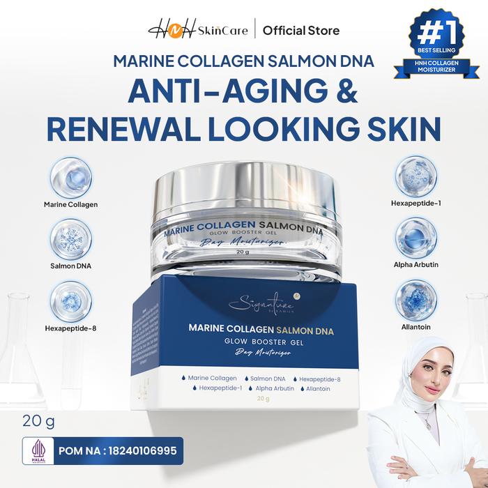 BUNDLING MARINE COLLAGEN DAY MOISTURIZING GLOW BOOSTER GEL & DNA SALMON RED JELLY SIGNATURE BY KAMILA, MEMPERBAIKI SKIN BARRIER DAN MEMBANTU MENCERAHKAN